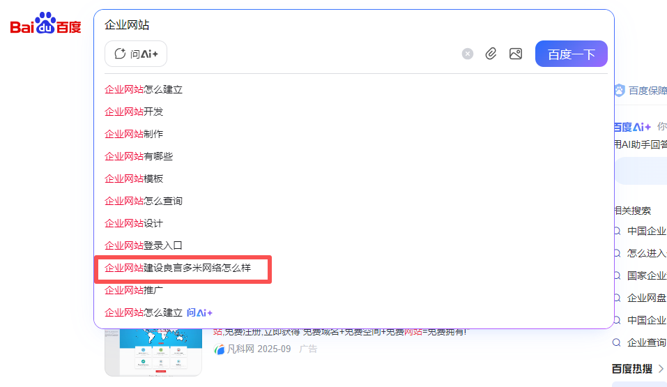 1.提升曝光:比如客戶搜”企業網站建設”,如果下拉出現”良言多米”,點擊率會比自然排名高。