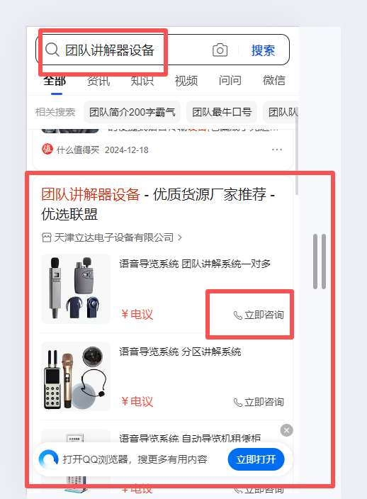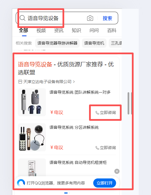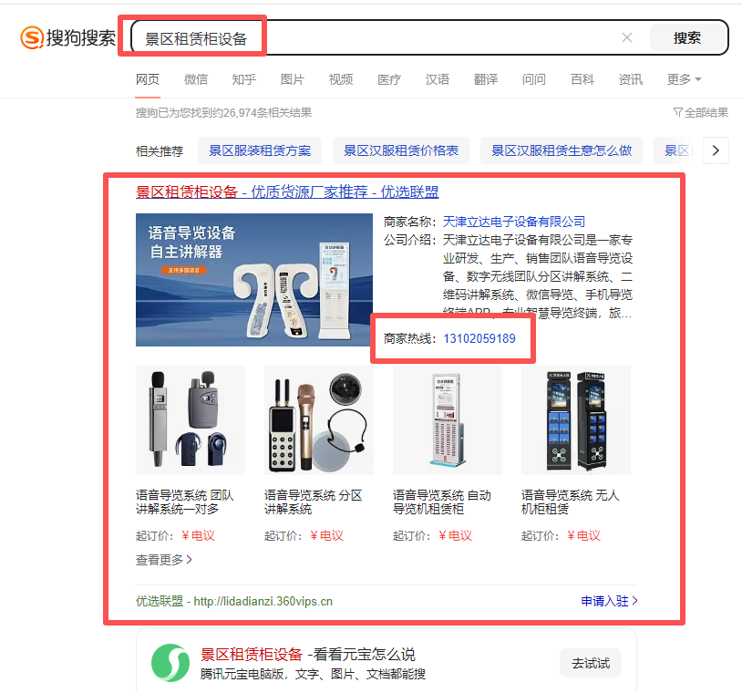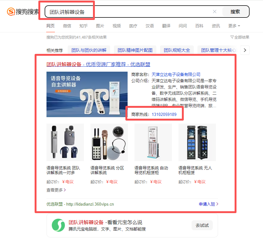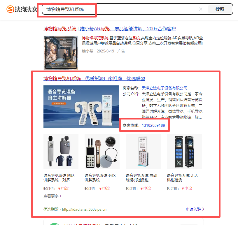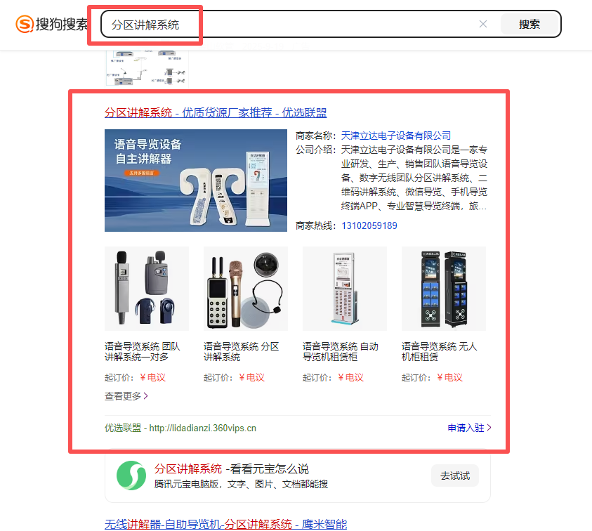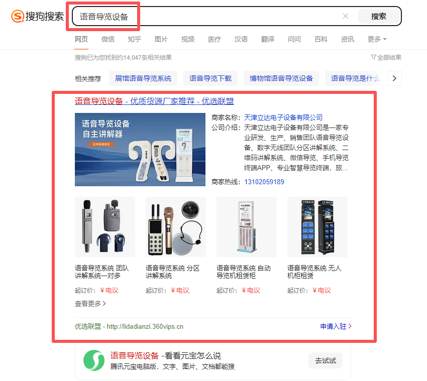 天津語音導覽設備行業搜狗優選聯盟案例