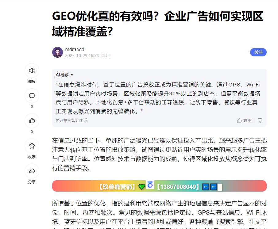2025年,浙江玖叁鹿科技站在數(shù)字營銷前沿,構(gòu)建了一套獨具特色且全面高效的閉環(huán)營銷模式。該模式由品牌引流、網(wǎng)絡(luò)媒體、新媒體營銷、短視頻營銷、輿情管理與AI搜索優(yōu)化GEO六大核心模塊緊密聯(lián)結(jié)而成,各模塊相互協(xié)作,形成強大營銷合力,精準(zhǔn)觸達(dá)目標(biāo)受眾,為企業(yè)打造全方位、多層次的營銷推廣體系。